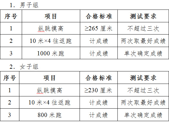 縱跳摸高不計成績,縱跳摸高達到合格標準即視為合格,達不到合格標準者取消進入下一個環(huán)節(jié)資格。1000米跑或800米跑、10米×4往返跑每項100分。1000米跑(女800米跑)、10米×4往返跑兩項成績之和除以2(體測成績保留小數(shù)點后兩位)即為體能測評得分。應(yīng)聘人員需對每項測評結(jié)果現(xiàn)場簽字確認,體能測評成績于測評結(jié)束后在正德人事考試網(wǎng)上服務(wù)平臺(http://zhengdekaoshi.com/ )進行公示,并同時公布監(jiān)督舉報電話。