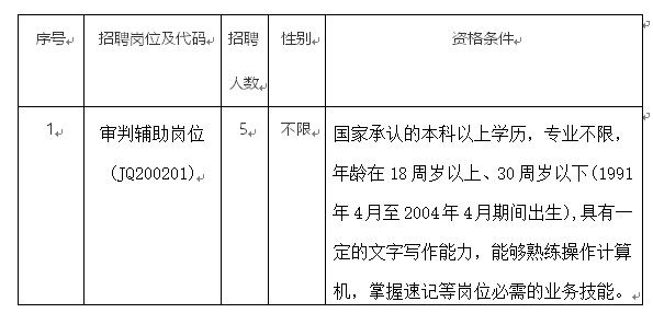 1.基本條件:具有中華人民共和國(guó)國(guó)籍,擁護(hù)中華人民共和國(guó)憲法,擁護(hù)中國(guó)共產(chǎn)黨領(lǐng)導(dǎo)和社會(huì)主義制度;具有良好的政治素養(yǎng)、專(zhuān)業(yè)能力和職業(yè)操守;熱愛(ài)法院工作,服從單位分配,品行端正,心理健康,愛(ài)崗敬業(yè),吃苦耐勞,有較好的群眾溝通能力;熟悉法律基礎(chǔ)知識(shí);身體健康,五官、體型端正;無(wú)口吃、無(wú)重聽(tīng)、無(wú)生理缺陷、紋身等特征。