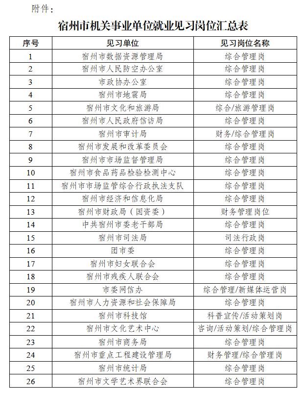 附件:宿州市機(jī)關(guān)事業(yè)單位就業(yè)見(jiàn)習(xí)崗位匯總表