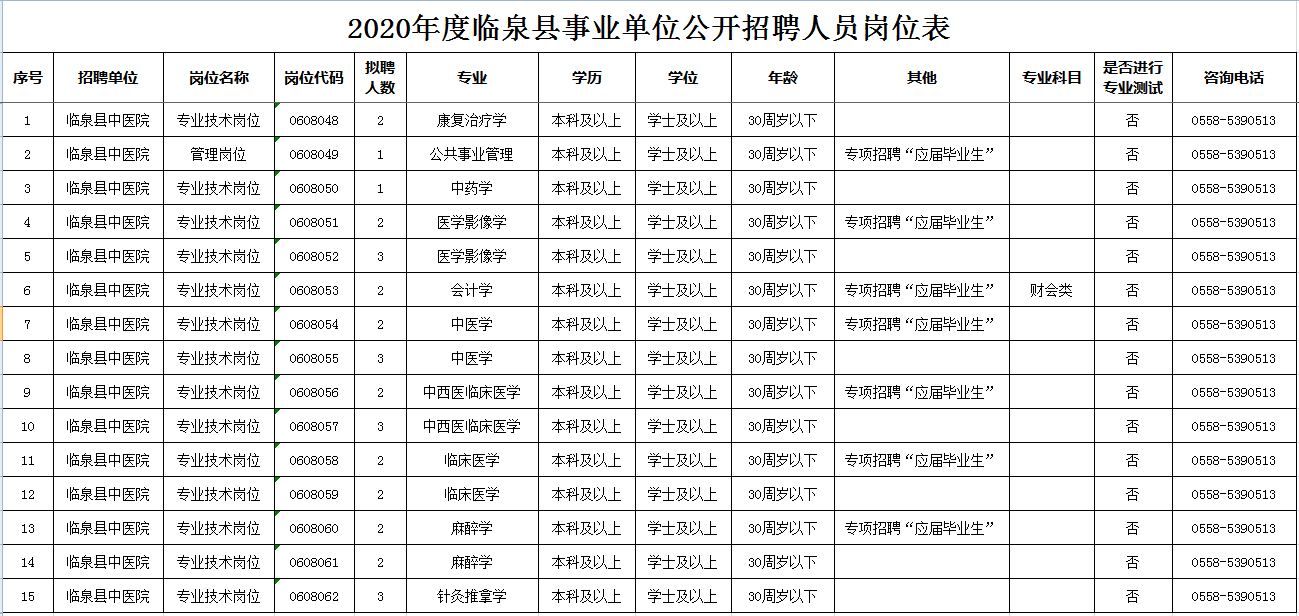 2020年度臨泉縣事業(yè)單位面向社會(huì)公開招聘人員工作已經(jīng)開始,臨泉縣中醫(yī)院計(jì)劃帶編招錄32人。
