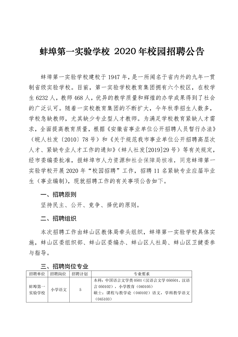 2020年蚌埠第一實(shí)驗(yàn)學(xué)校校園招聘公告