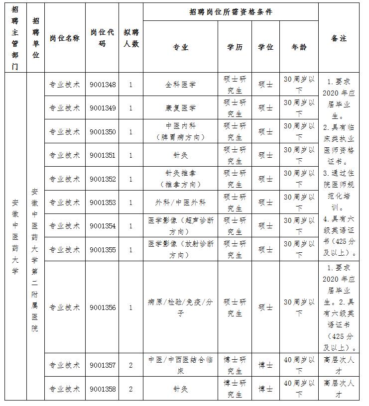 2020年安徽中醫(yī)藥大學(xué)第二附屬醫(yī)院招聘工作人員招聘公告