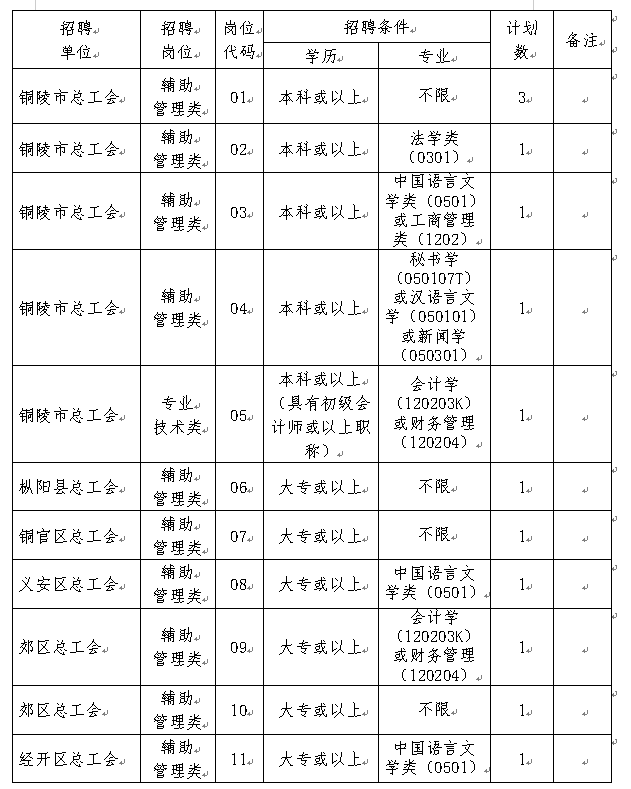 2.報考市總工會崗位的,需取得本科以上學歷;報考縣(區(qū))總工會崗位的,需取得大專以上學歷。