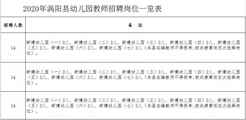 附件:《渦陽縣2020年公立幼兒園公開招聘教師崗位一覽表》