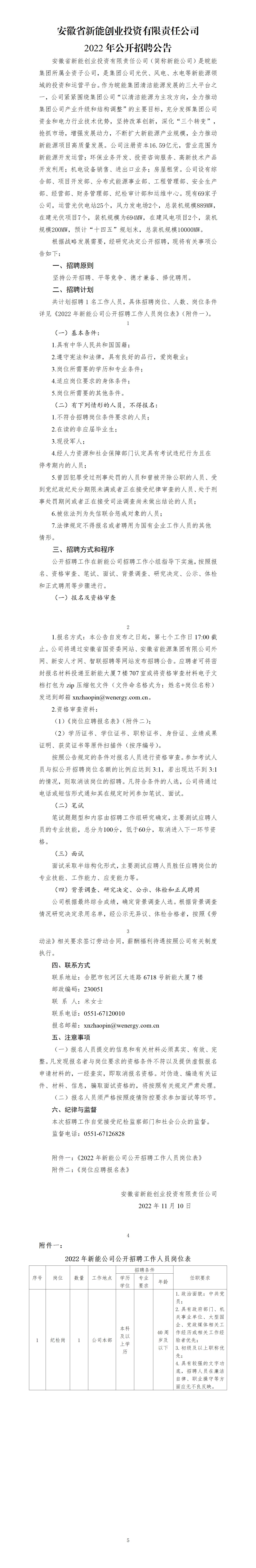 2022年安徽省新能創(chuàng)業(yè)投資有限責任公司公開招聘公告