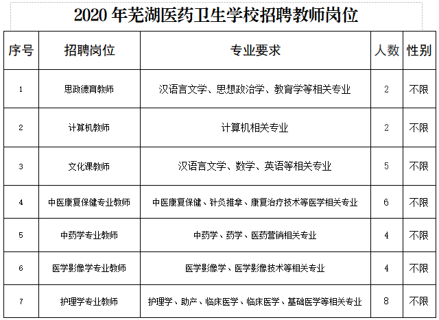 2020年蕪湖醫(yī)藥衛(wèi)生學校教師招聘公告