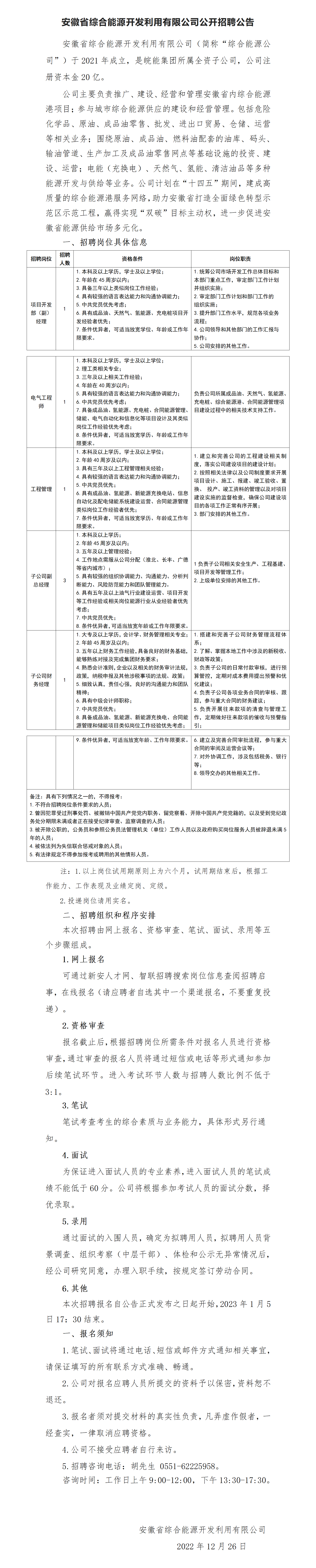 2022年安徽省綜合能源開(kāi)發(fā)利用有限公司公開(kāi)招聘公告