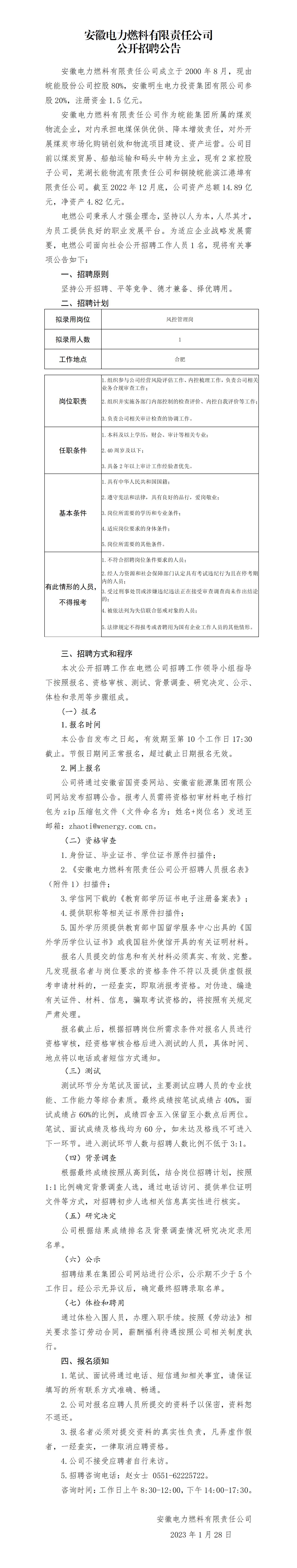 2023年安徽電力燃料有限責(zé)任公司公開(kāi)招聘公告