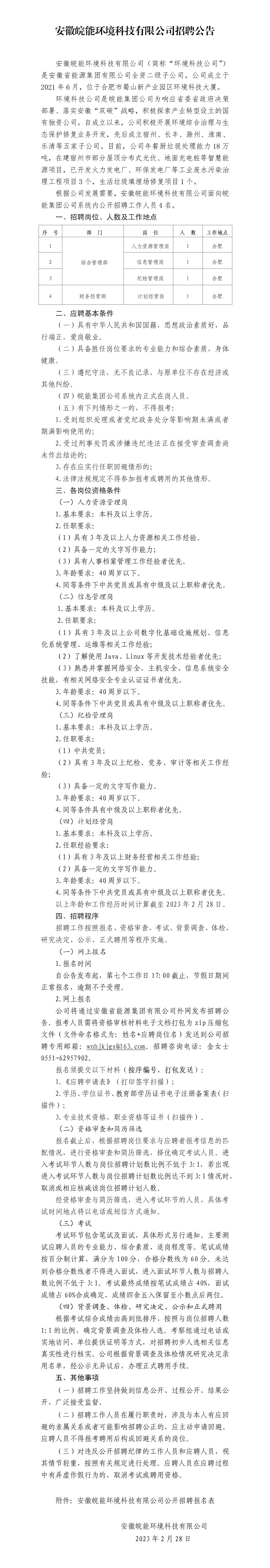 2023年安徽皖能環(huán)境科技有限公司招聘公告
