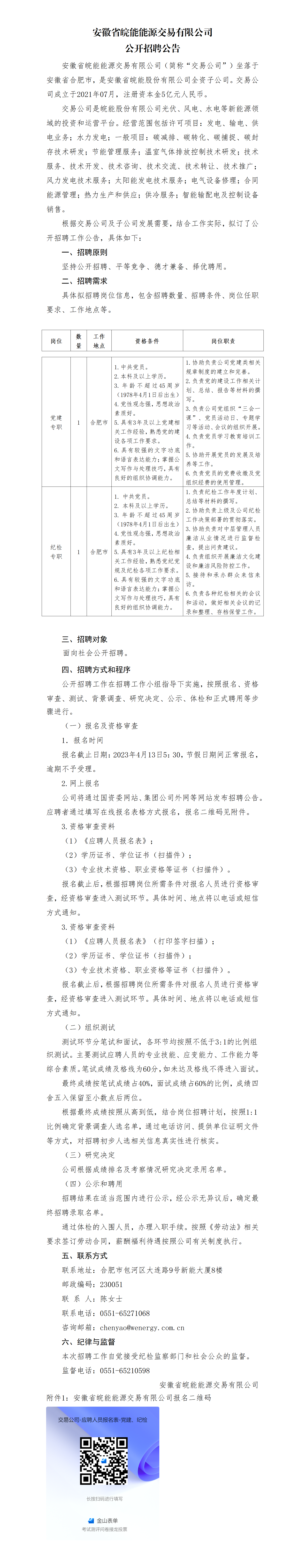2023年安徽省皖能能源交易有限公司公開招聘公告