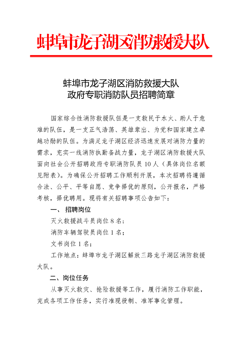 七、本招聘簡章解釋權(quán)歸蚌埠市龍子湖區(qū)消防救援大隊所有,長期有效。