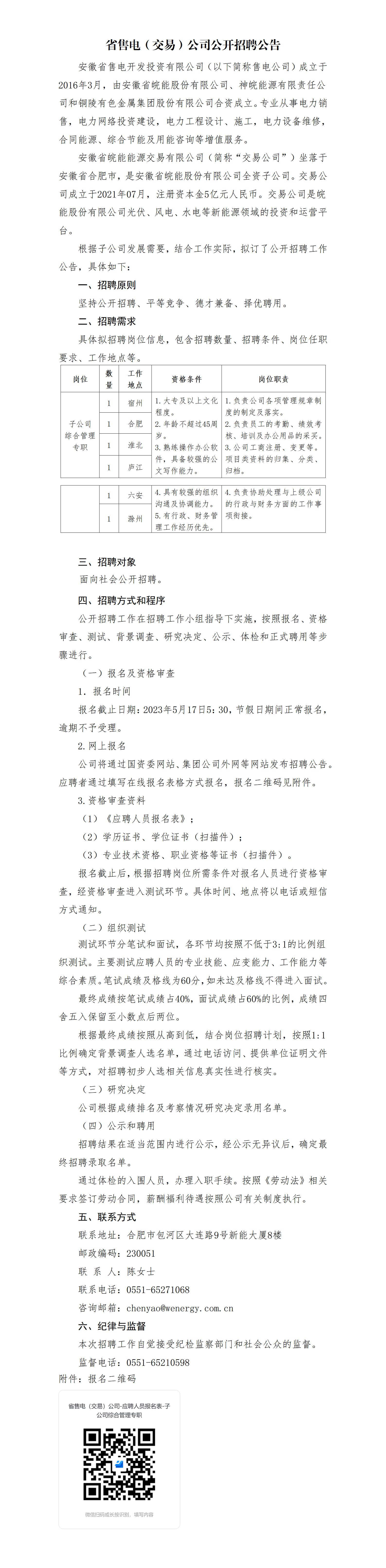 2023年安徽省售電(交易)公司公開招聘公告