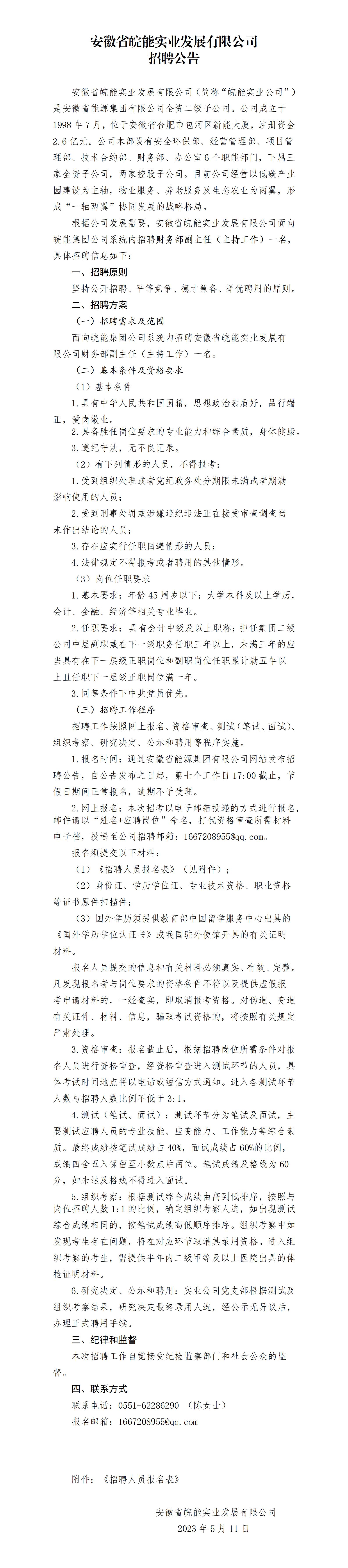2023年安徽省皖能實(shí)業(yè)發(fā)展有限公司招聘公告