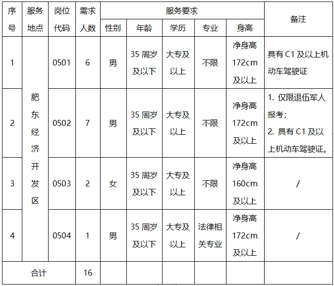 2、崗位代碼0502(僅限退伍軍人報考),學(xué)歷要求:由原來的“大專及以上”變更為“高中及以上”;備注要求:由原來“具有C1及以上機(jī)動車駕駛證”變更為“具有C1及以上機(jī)動車駕駛證優(yōu)先”