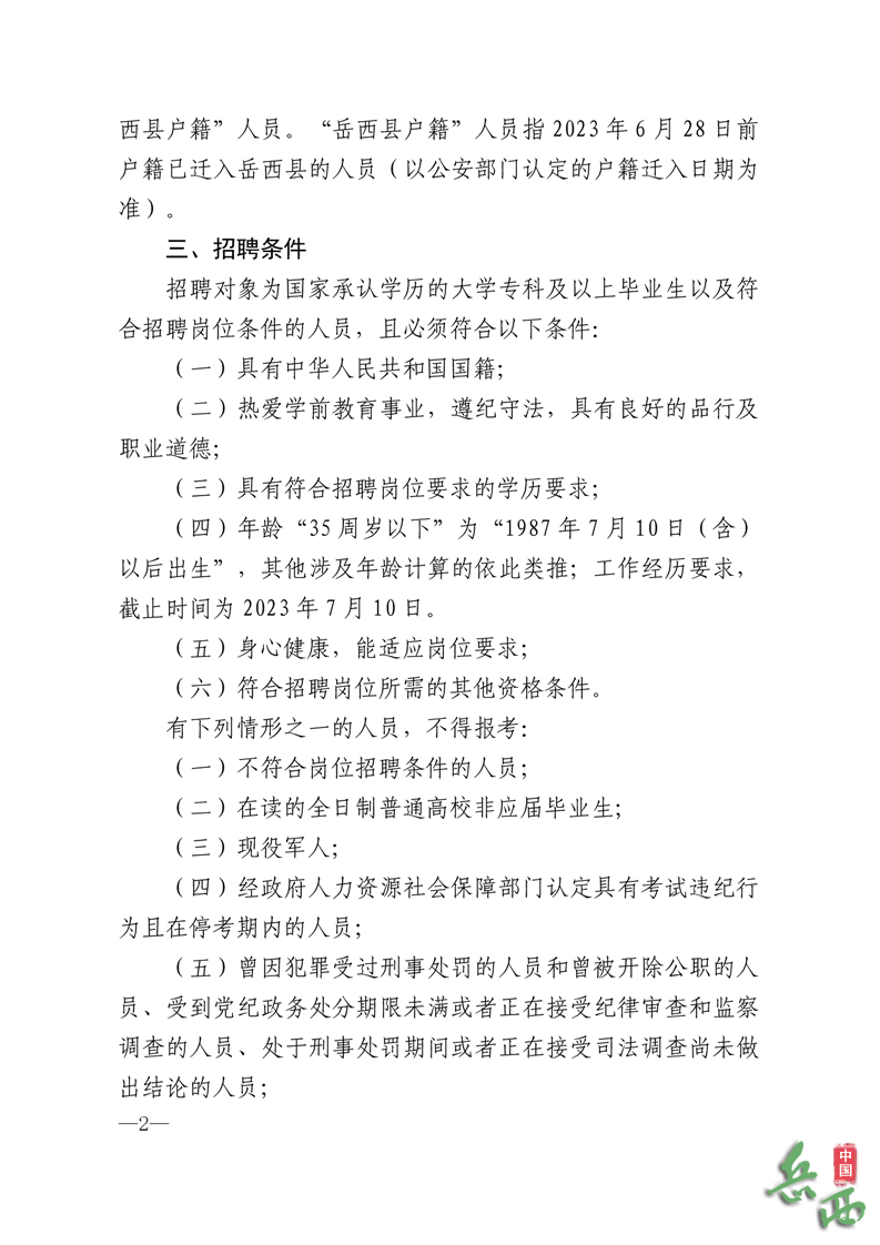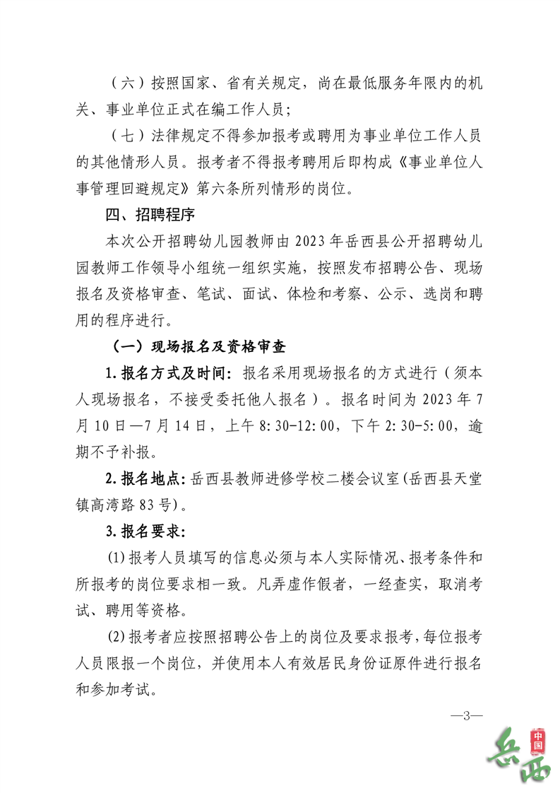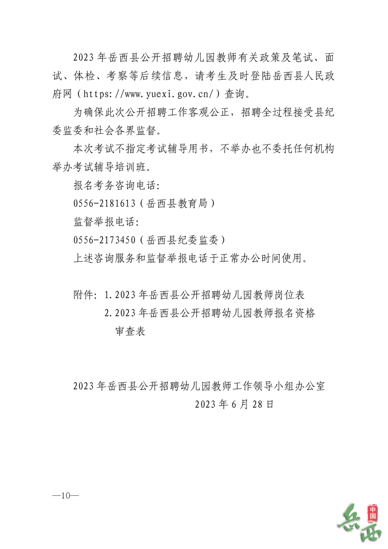 2023-06-28 19:11:22閱讀()岳西縣人民政府根據(jù)《安徽省事業(yè)單位公開招聘人員暫行辦法》(皖人社發(fā)〔2010]78號)、《關于進一步做好艱苦邊遠地區(qū)縣鄉(xiāng)事業(yè)單位公開招聘工作的實施意見》(皖人社發(fā)〔2017〕21號)、《關于創(chuàng)新體制機制加強公辦幼兒園教職工隊伍建設的意見》(皖編辦〔2020〕272號)、《岳西縣落實公辦幼兒園編制保障和非編保教人員待遇的方案》(岳政辦秘〔2021] 79號)規(guī)定和要求,現(xiàn)就2023年岳西縣公開招聘幼兒園教師有關事項公告如下:
