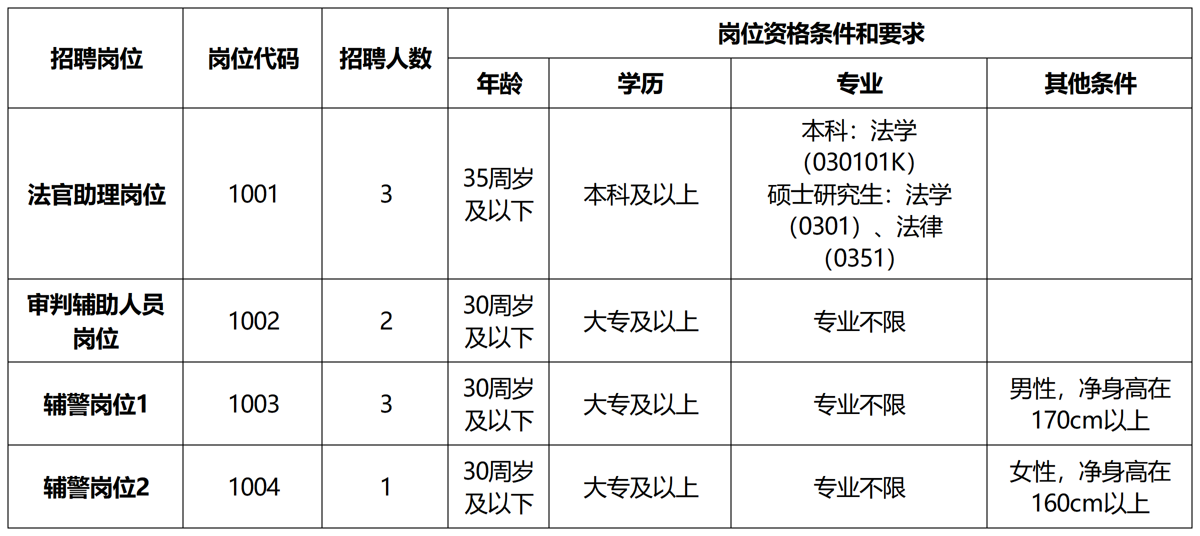 (2)根據(jù)審判工作專業(yè)化需要,審判輔助人員崗位(1002崗)法律專業(yè)大專學歷(法律實務(wù)類專業(yè)代碼:6805)的在筆試成績基礎(chǔ)上加2分,法律專業(yè)本科及以上學歷(本科法學專業(yè)代碼:030101K、研究生法學專業(yè)代碼:0301、0351)的在筆試成績基礎(chǔ)上加3分,學歷加分不累加。