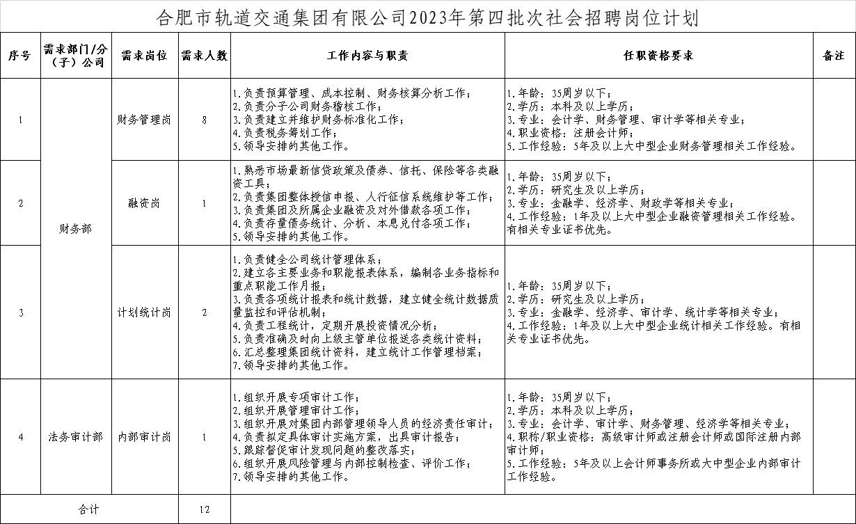 2023年合肥市軌道交通集團有限公司第四批次社會招聘公告