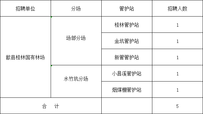 通過第三方勞務(wù)派遣方式招聘歙縣桂林國有林場護(hù)林員共5名。