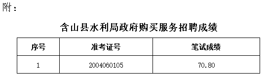 2020-04-20 18:09:15閱讀()含山縣人民政府因部分考生放棄資格,根據(jù)《縣水利局公開招聘政府購買服務(wù)工作人員公告》,按照筆試成績(jī)從高到低順序,遞補(bǔ)以下考生,公示期限3天,自2020年4月14日至2020年4月16日。