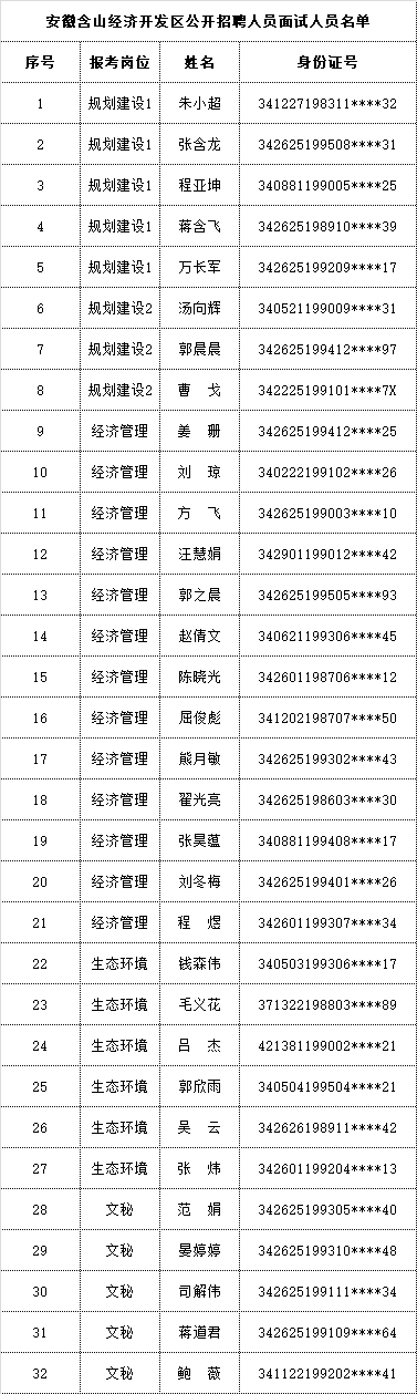 2020-06-02 17:47:59閱讀()含山縣人民政府根據(jù)《安徽含山經(jīng)濟開發(fā)區(qū)公開招聘人員公告》,經(jīng)報名、資格審查,現(xiàn)將進入面試人選名單及有關(guān)事項公告如下: